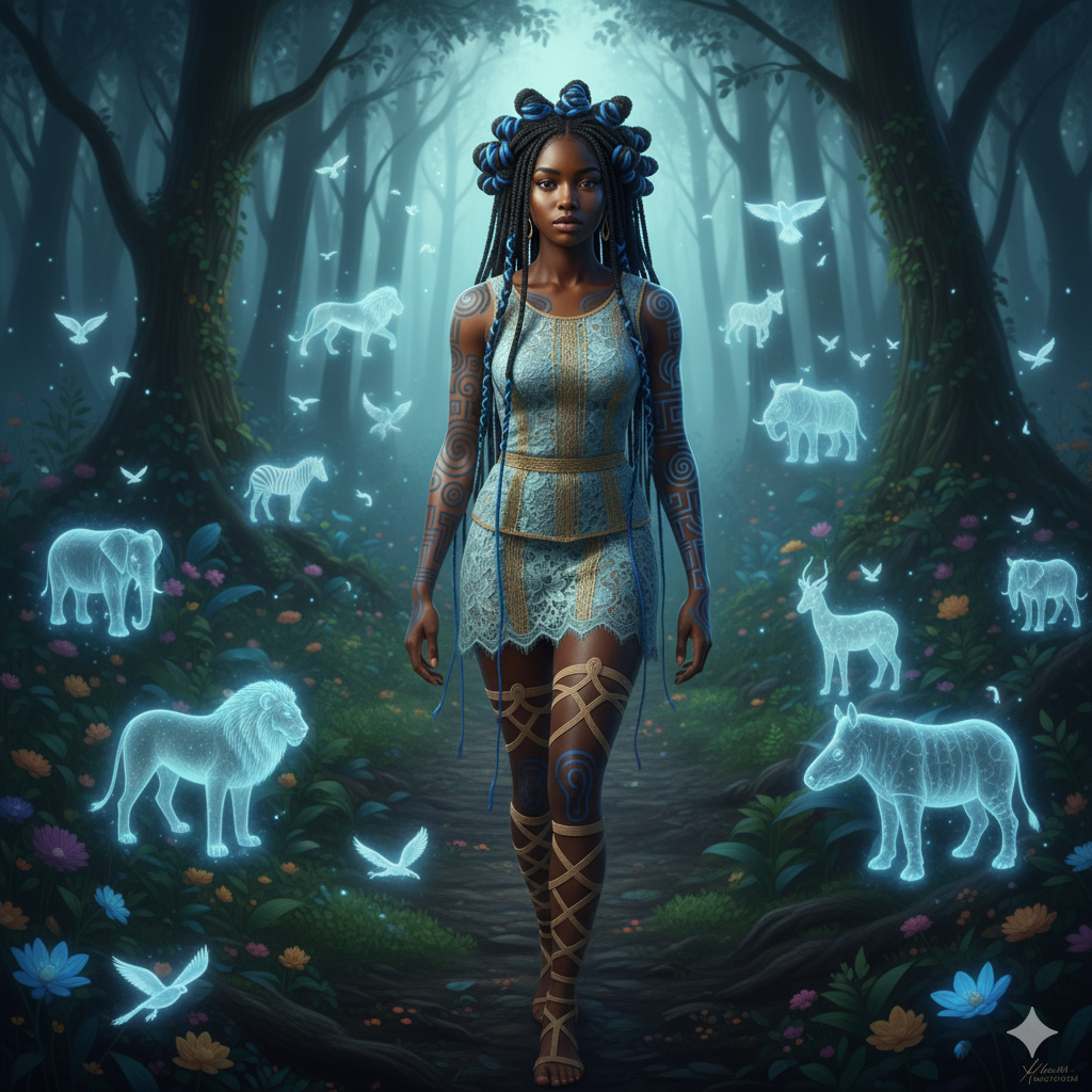 Meet N’Adina. She’s a Shaman, but a special kind. She comes from a place where Shaman dominate, and decorations on her skin are evidence of that. They are a sign of the priestess Clan, a group of Shaman unique to the Great Spirit Forest.